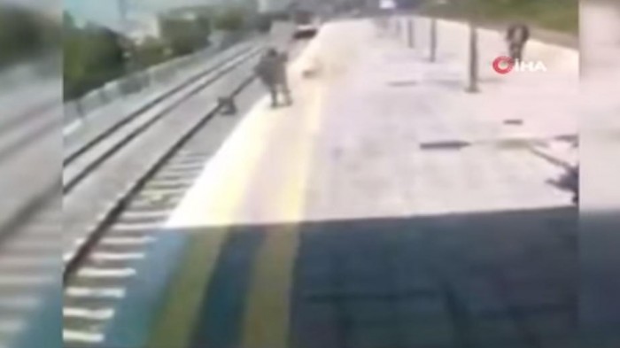 Kejadian yang berlangsung di stasiun Kucukcekmece Mustafa Kemal, Istanbul, Turki, tersebut terlihat dramatis seperti adegan di film-film laga.
