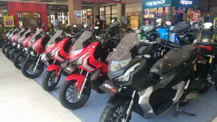 Jajaran Honda ADV 150 yang dipajang di Mal Panakkukang, Sabtu +31/8/2019) / foto: AdriKAREBANUSA.com, Makassar - Astra Motor Makassar (AMM) sebagai main dealer Honda untuk wilayah SulSelBarTra dan Ambon memperkenalkan produk terbaru ADV 150 dan Genio di Mal Panakukang, Makassar, Sabtu (31/8/2019).