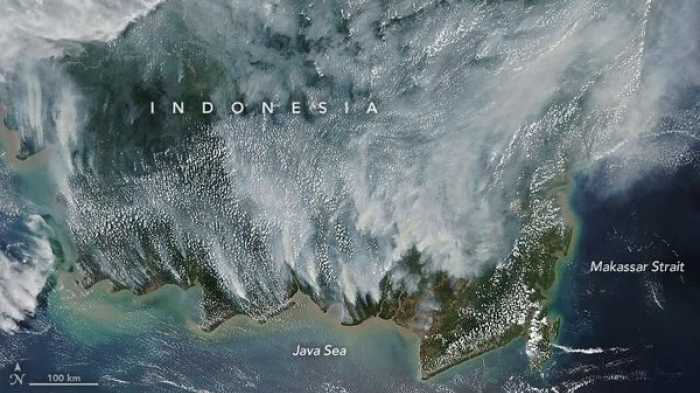 Terlihat Jelas dari Satelit, Tenggok Penampakan Kalimantan Diselimuti Asap Tebal