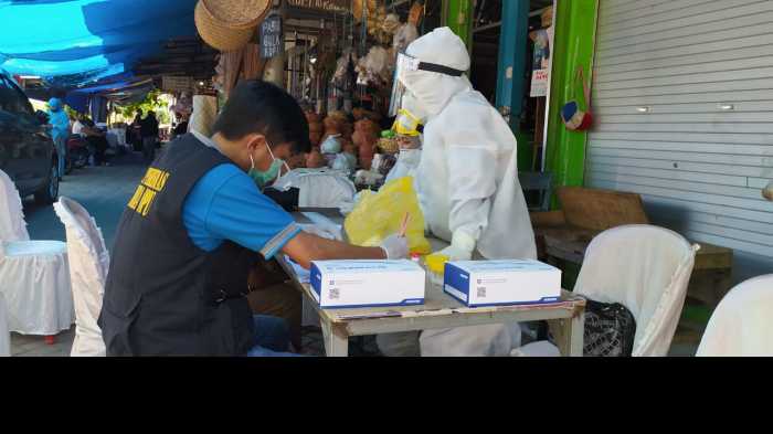 "Karena pasar ini kan banyak orang. Kita takutkan ada yang terpapar. Jadi itu yang kita sasar dulu penjual di pasar. Dan kalau memang memungkinkan kita juga akan door to door di toko-toko depan pasar," jelas Kadis Kesehatan, dr Hasanuddin.
