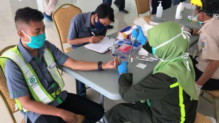 KAREBANUSA.COM, MAKASSAR – Manajemen PT Pelindo IV (Persero) Cabang Makassar New Port (MNP) melakukan Rapid Test Virus Corona kepada total 29 orang karyawan yang terdiri dari 17 security, 6 petugas gate, 4 pengawas security dan 2 tenaga administrasi.