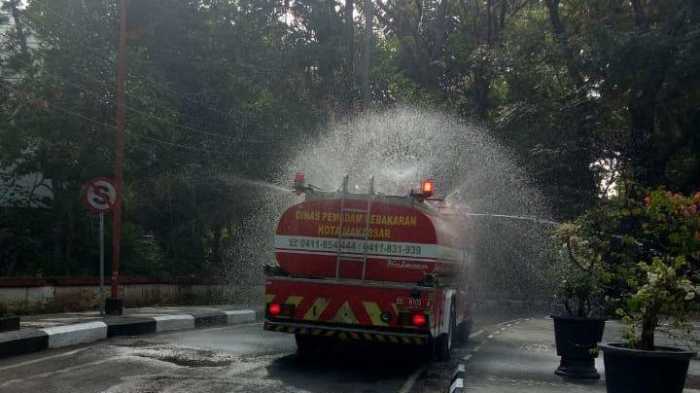 Tim disinfeksi dari Pemerintah Kota Makassar terdiri atas 11 unit kendaraan pemadam kebakaran dan watercanon. Tim ini juga dilengkapi dengan 4 regu penyemprot, yang membagi diri ke empat area di Unhas, yaitu kawasan humaniora, medical complex, agro complex, dan area saintek. Penyemprotan cairan disinfektan dilakukan untuk seluruh gedung yang berada di lingkungan Unhas
