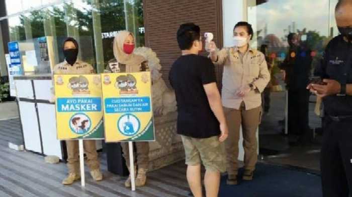 Petugas memeriksa suhu tubuh pengunjung sebuah mal - foto: intKAREBANUSA.COM, Makassar - Pemerintah Kota Makassar membatasi aktivitas masyarakat di tempat publik mulai 24 Desember 2020 hingga 3 Januari 2021 mendatang. Hal ini dilakukan untuk mencegah penularan Covid-19 yang makin tinggi akhir-akhir ini di Makassar.