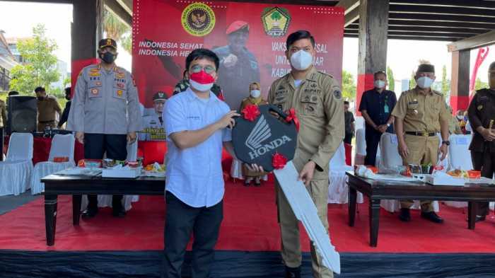 Menariknya, Asmo Sulsel menyediakan hadiah Doorprize 1 Unit Honda Genio bagi peserta vaksin yang beruntung. Penyerahan grandprize sepeda motor Honda diserahkan secara simbolis oleh Marketing Promotion, Arif Reda, kepada Bupati Gowa, Adnan Purichta Ichsan, di salah satu titik vaksinasi yaitu Ballo Lampoa, Kabupaten Gowa.