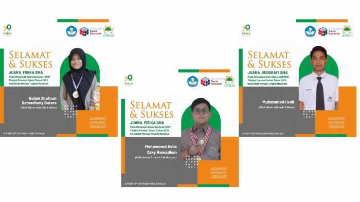 Sebelumnya, ketiga jagoan Sekolah Islam Athirah tersebut bertarung dalam Olimpiade Sains Tingkat Kabupaten (OSK). Mereka kemudian kembali unjuk kemampuan pada Olimpiade Sains Tingkat Provinsi (OSN-P). Hasilnya, ketiganya berhak mewakili Provinsi Sulawesi Selatan dalam OSN 2022 yang akan digelar pada Oktober mendatang.