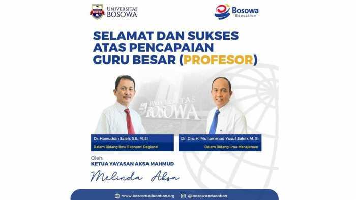 - Universitas Bosowa Kukuhkan 2 Guru Besar, Founder Bosowa: Kampus Makin Hebat