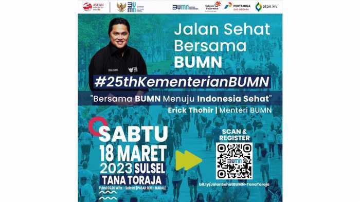 KAREBANUSA.COM, Makale - Kementerian BUMN menggelar akan Jalan Sehat Bersama BUMN di Tana Toraja, Provinsi Sulawesi Selatan, Sabtu (18/3/2023).