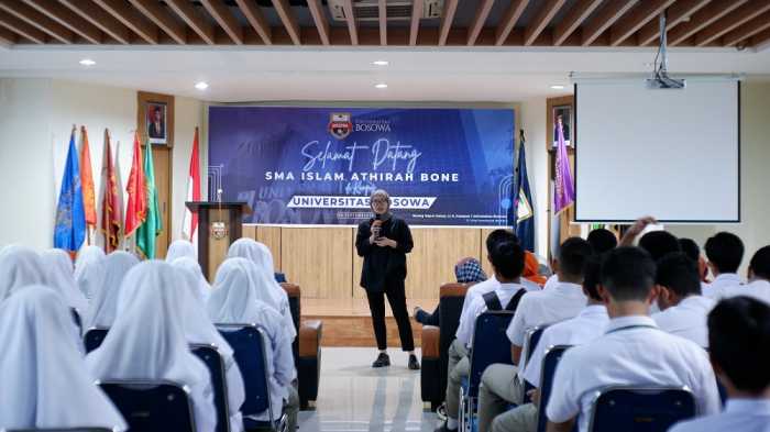 KAREBANUSA.COM, Makassar - Universitas Bosowa (Unibos) menerima kunjungan 80 siswa SMA Islam Athhirah Bone di Ruang Rapat Senat, Rabu (6/9/2023).