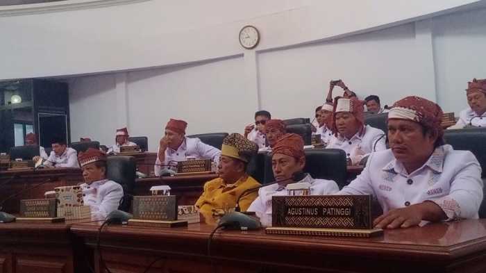 Dalam rapat ini, anggota dewan dan pejabat pemerintahan kompak mengenakan pakaian adat khas Toraja.