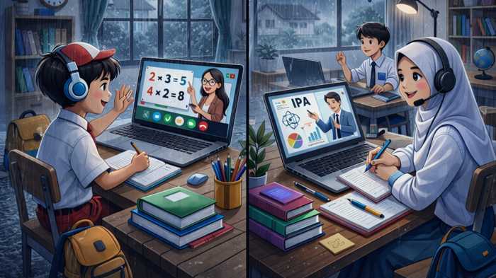 Ilustrasi anak sekolah belajar secara daring karena cuaca ekstrem dibuat menggunakan kecerdasan buatan.KAREBANUSA.COM, MAKASSAR - Pemerintah Kota Makassar melalui Dinas Pendidikan menerbitkan surat edaran tentang pelaksanaan pembelajaran daring untuk jenjang PAUD/TK, SD, dan SMP selama 4 hari, 25 - 28 Februari 2026.