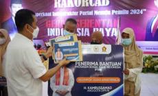 Penyerahan bantuan ini dilakukan di Gedung Mutiara Minasatene Pangkep, dalam rangka Rakorcab Partai Gerindra Pangkep.